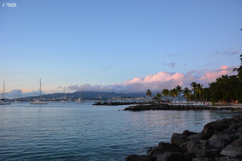De temps en temps, N. et moi allons faire une petite balade du côté des Trois-Ilets à la Pointe du Bout. On aime bien cet endroit qui nous rappelle un peu les stations balnéaires de métropole. Haut lieu touristique, cet endroit est bordé de commerces, de restaurants et de bars où il fait bon de s’y promener ou encore de manger. Pour vous donner une idée, c’est un village créole bordé d’hôtels et de plages. Si vous recherchez de l’authenticité, ce n’est pas vraiment le bon endroit … Mais vous trouverez tout de même quelques boutiques sympathiques comme la Galerie de Sophen qui propose de superbes aquarelles sur l’île. Un véritable plaisir pour les yeux ! Et puis lorsqu’on se rend à la Pointe du Bout, on oublie pas de faire un petit détour du côté des plages artificielles. Oui, oui !! Ces quatre anses sont idéales pour se baigner avec des petits, c’est le calme plat et l’eau y est d’un bleu lagon presque surnaturel. On a presque envie de s’y perdre et la vue sur la Baie de Fort-de-France est tout simplement magique. Mais l’un des moments que j’affectionne tout particulièrement, c’est lorsque que le soleil commence à se coucher et nous laissant en admiration devant une multitude de couleurs … malheureusement éphémère. A cet instant, j’aimerai que ces moments durent des heures !